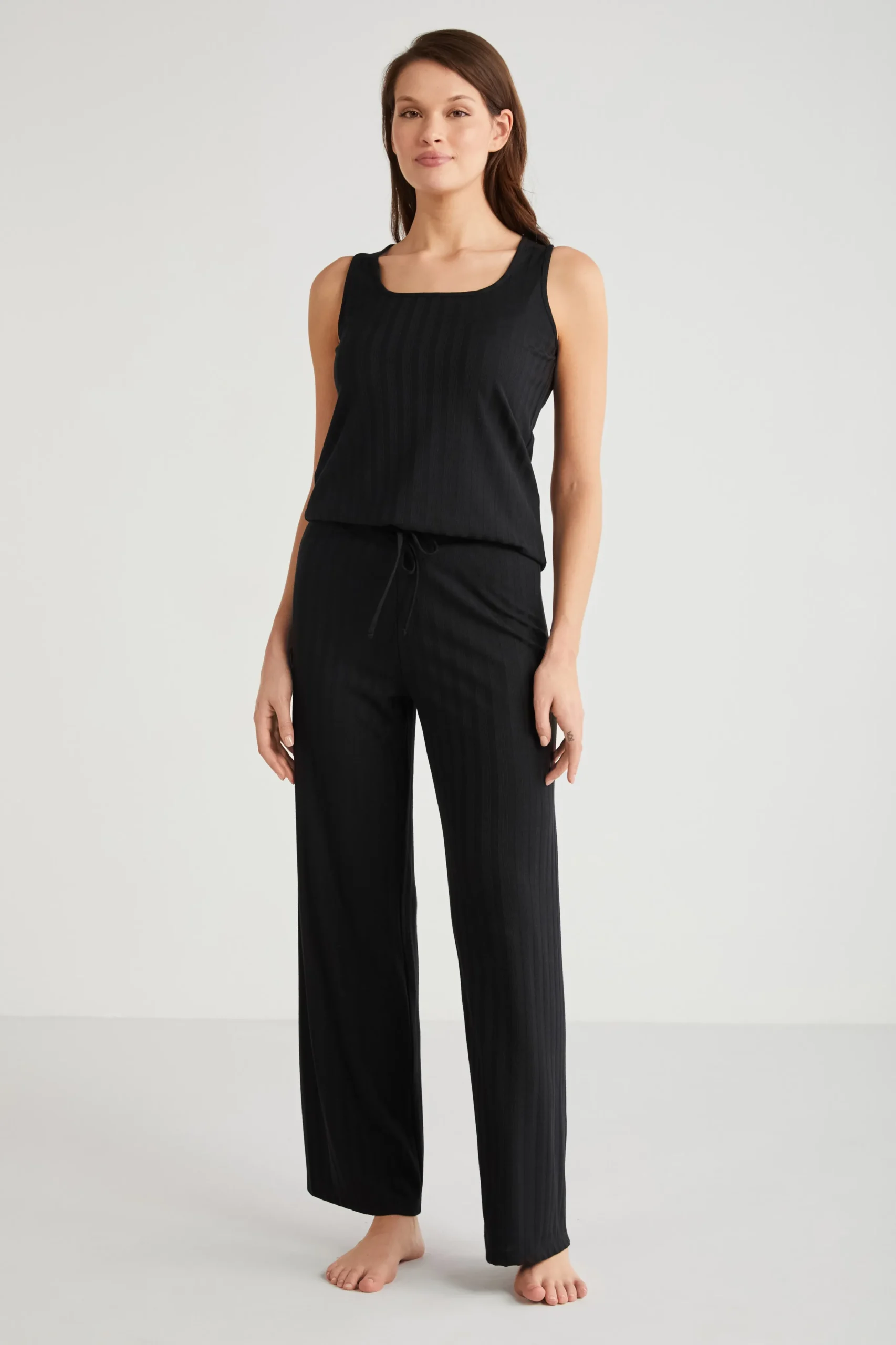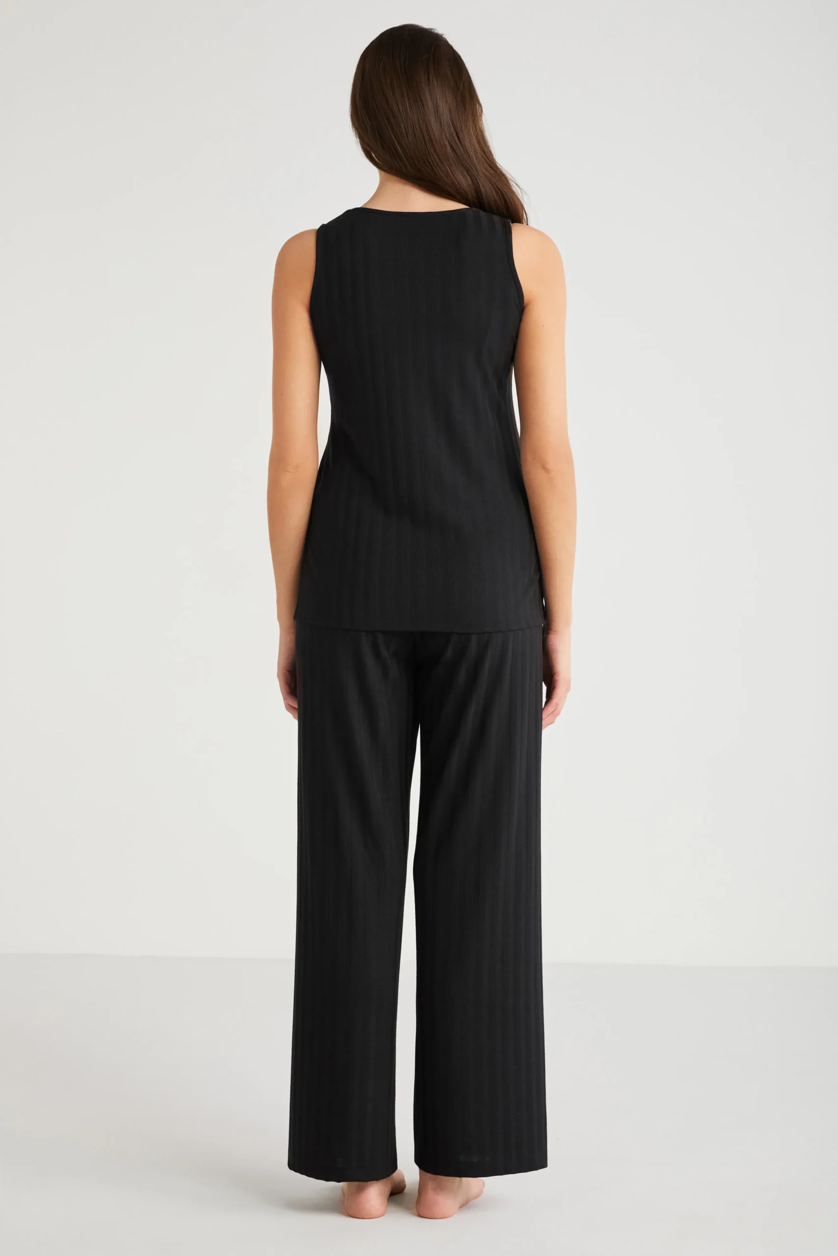 This luxurious pajama set offers a comfortable, timeless design, featuring a soft, elegant blend of polyester, vision, and elastane.