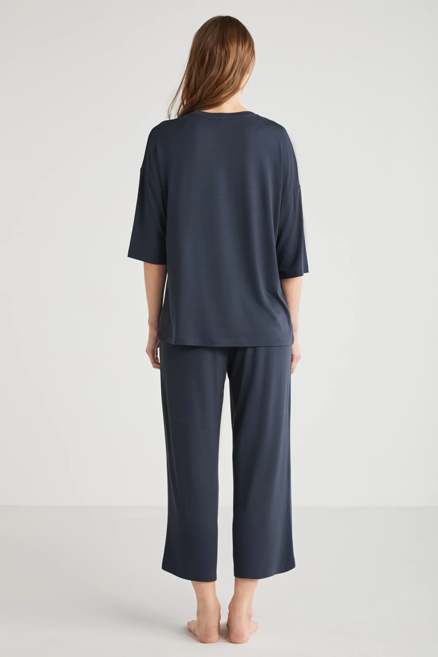 This elegant pajama set combines comfort and style, perfect for a relaxing night. Crafted from a premium blend of polyester, viscose, and elastane, it features a half-sleeve top with a relaxed fit and a matching drawstring waist pant. Designed for a soft feel and breathable wear, this set is an ideal choice for lounging or sleeping, delivering luxurious coziness with a touch of sophistication.